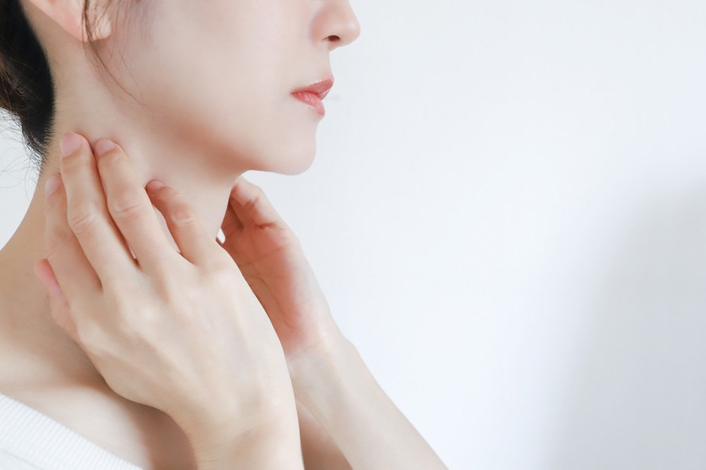 呼吸が浅い状態では首・肩まわりの筋肉に頼って呼吸するため、首まわりに強い緊張が生まれます。