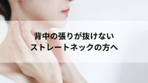 ストレートネックによる寝違えや首こりを改善するためには、首だけをほぐすのではなく、姿勢や身体全体のバランスを整えていくことが重要です。特に肩甲骨や背中、胸郭の動きが改善されることで、首の筋肉にかかる負担を減らすことができます。